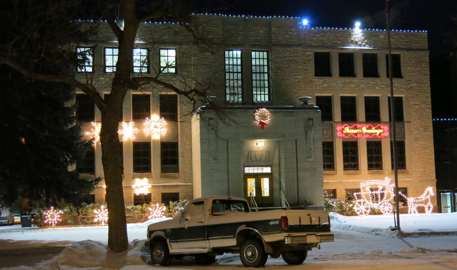 After dark, we took a long walk around the mostly deserted town: wide streets, old buildings, pick-up trucks.