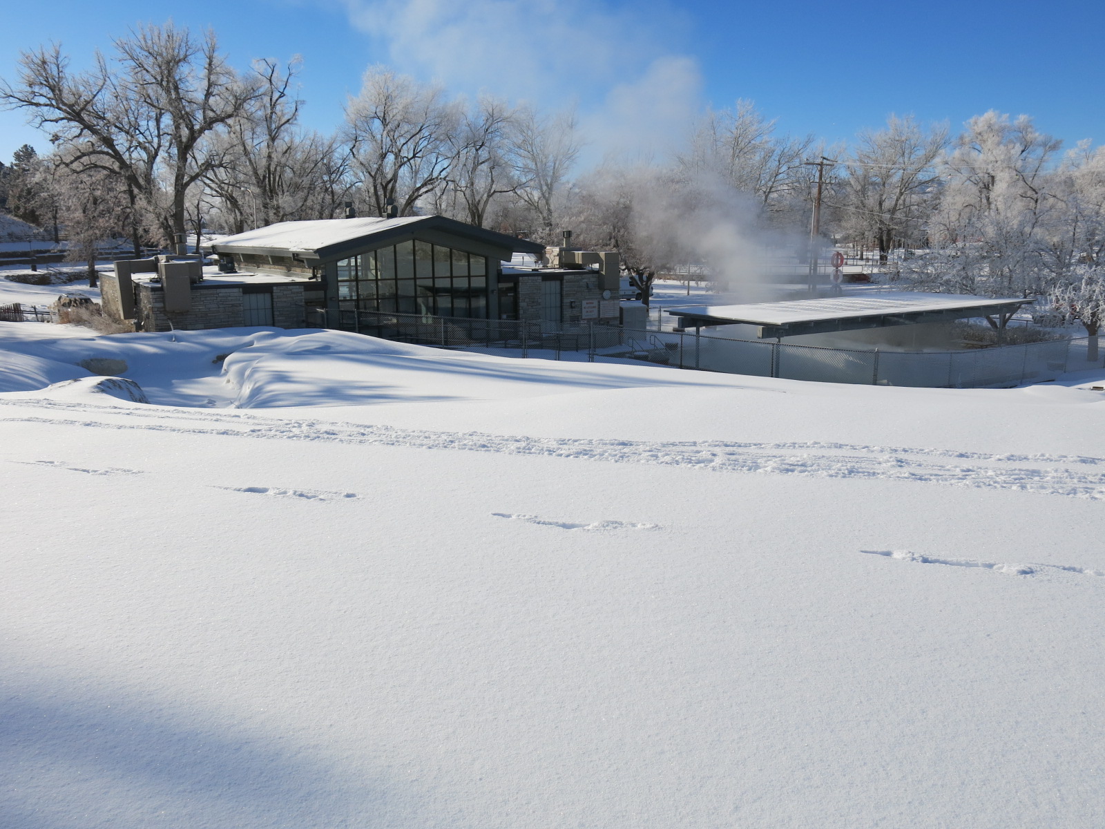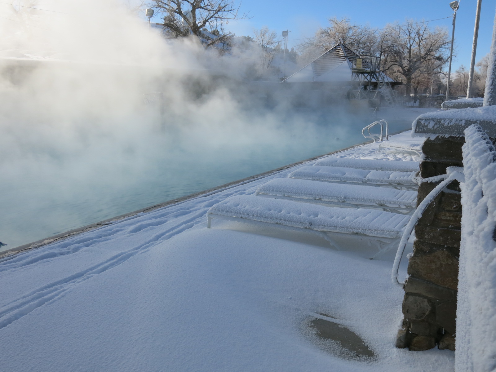Our route took us through Wyoming where we got stuck in Thermopolis in a snow storm. Dang! We had to spend 24 hours soaking in one of my favorite hot springs.