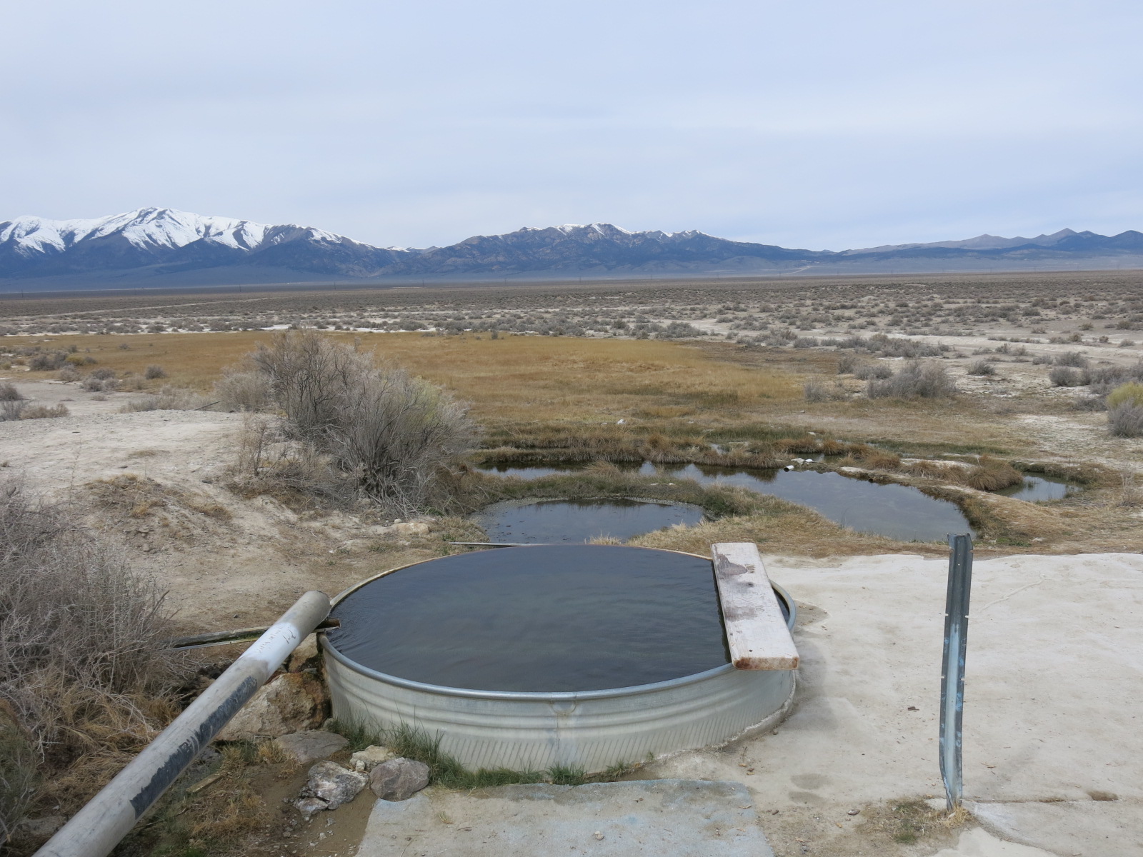 This makes the fifth spring break we’ve spent in Death Valley National Park, one of our favorite places. On the way down, we stop at Spencer Hot Springs in northern Nevada. The pool is clean, and water enters the pool at about 130 degrees, so getting the pool hot enough is not a problem. Cool it down by sliding the pipe to the side and let it sit awhile. Enjoy a view of the Toiyabe Range while you soak.