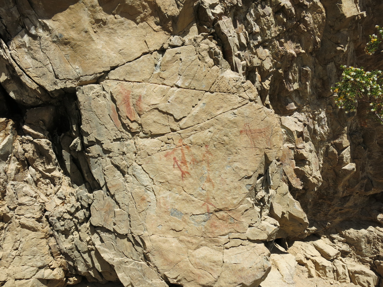 Death Valley is full of surprises, full of secrets. In the interest of preserving fragile sites, most people (including me) don’t mention these places; however these pictographs are pretty well known. In Death Valley, pictographs (paint on rock) is much less common than petroglyphs (chipping or carving on rock).