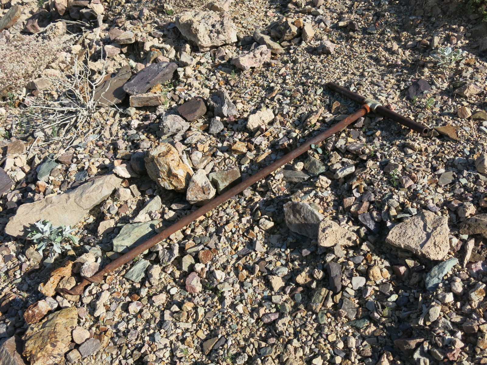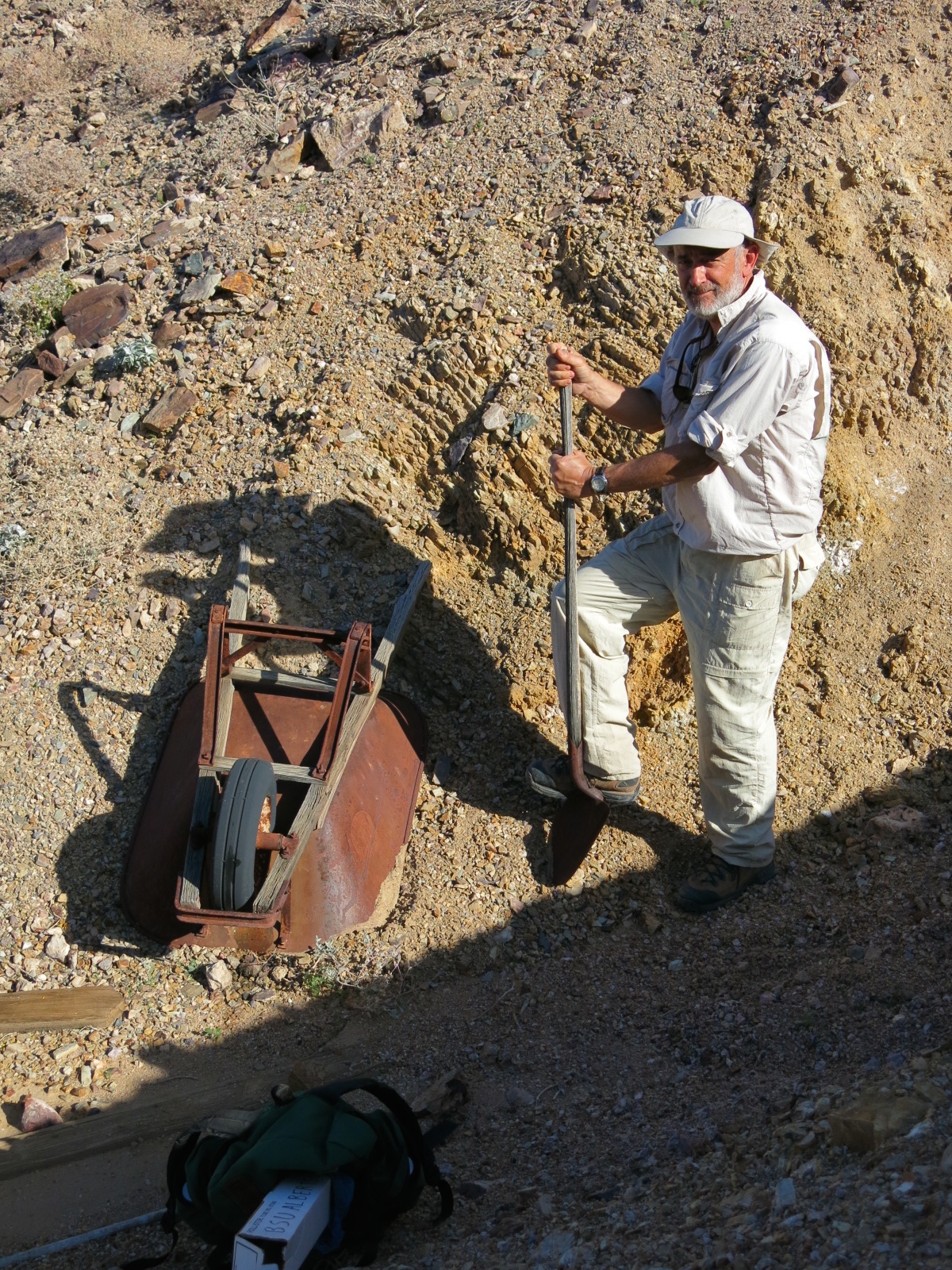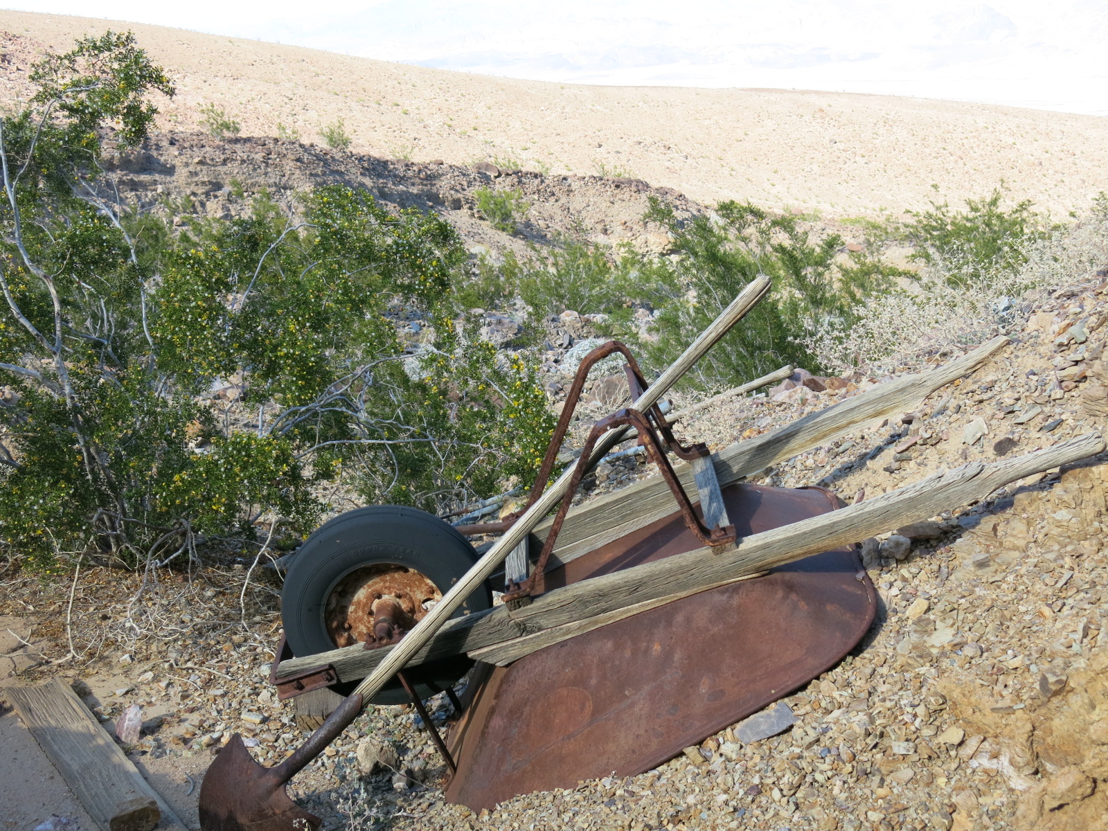 This mine can’t be too old–note the rubber tire. Having no name that we know of, we dub this the Wheelbarrow Mine.
