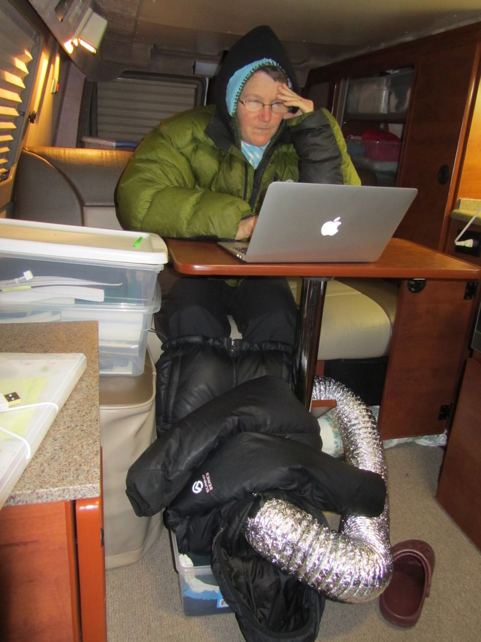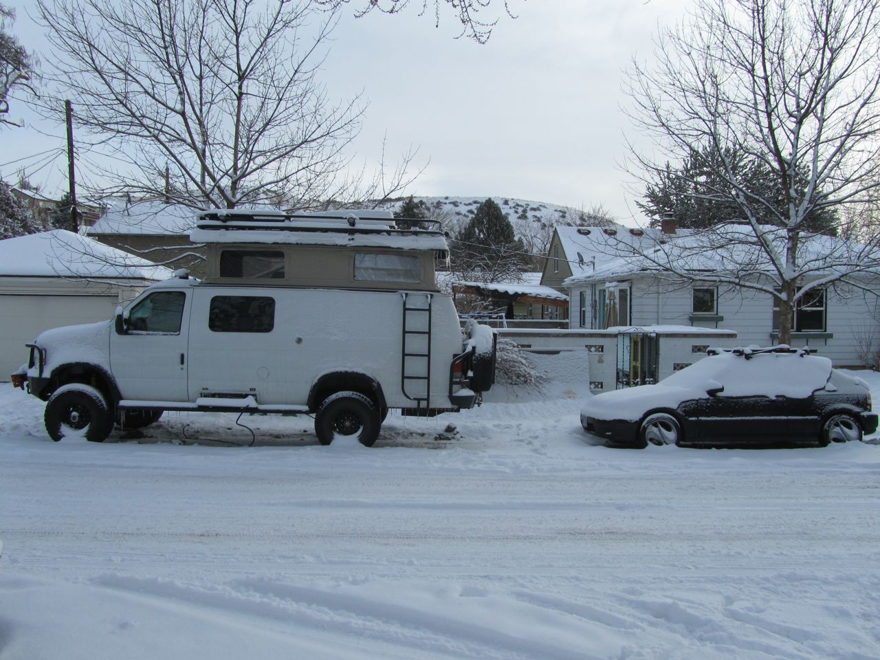 Everyone here in Boise always talks about how Boise winters really are not that bad. Not that cold, not that much snow. So it turns out our first winter was one of the snowiest and coldest in 20 years. But no problem with Moby’s forced air propane furnace, and an extension cord to the garage electricity.