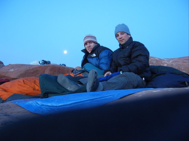 It’s a long story. Here’s the short version. Larry and I taught at Reynolds High School with the guy on the left in the picture below. Doug Beardsley: biker, climber, skier, outdoorsman extraordinaire. Mike Glaine, on the right, joined the staff, and he and Doug hit it off. They climbed mountains and slept in the snow. Their journeys were epic. Years passed, and Doug picked up a wife and baby . . .