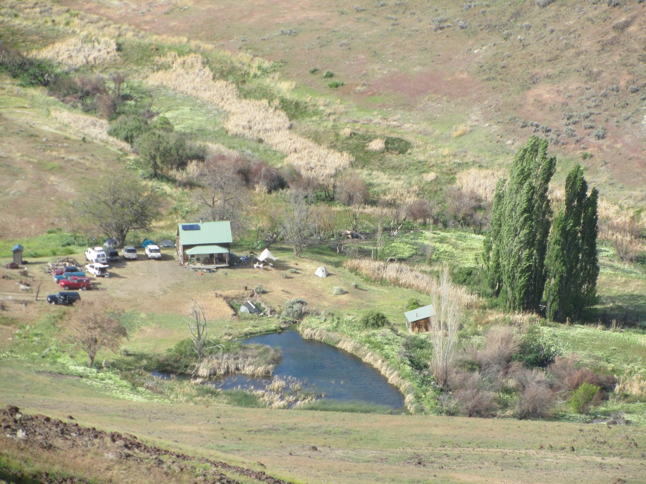2-rinehart cabin No longer an active cattle ranch, it is owned by a serious chukar hunter from Bend, OR. I have hunted chukars in the area, but had never been to the ranch. So when the Oregon Natural Desert Association (ONDA) set up a work party at the ranch I signed up. Last summer a 19,000 acre fire swept around the cabin and burned out the creek bottom, which serves as important wildlife habitat. So about 20 folks gathered from all over the Northwest to plant thousands of cottonwoods and willows to speed up the restoration.