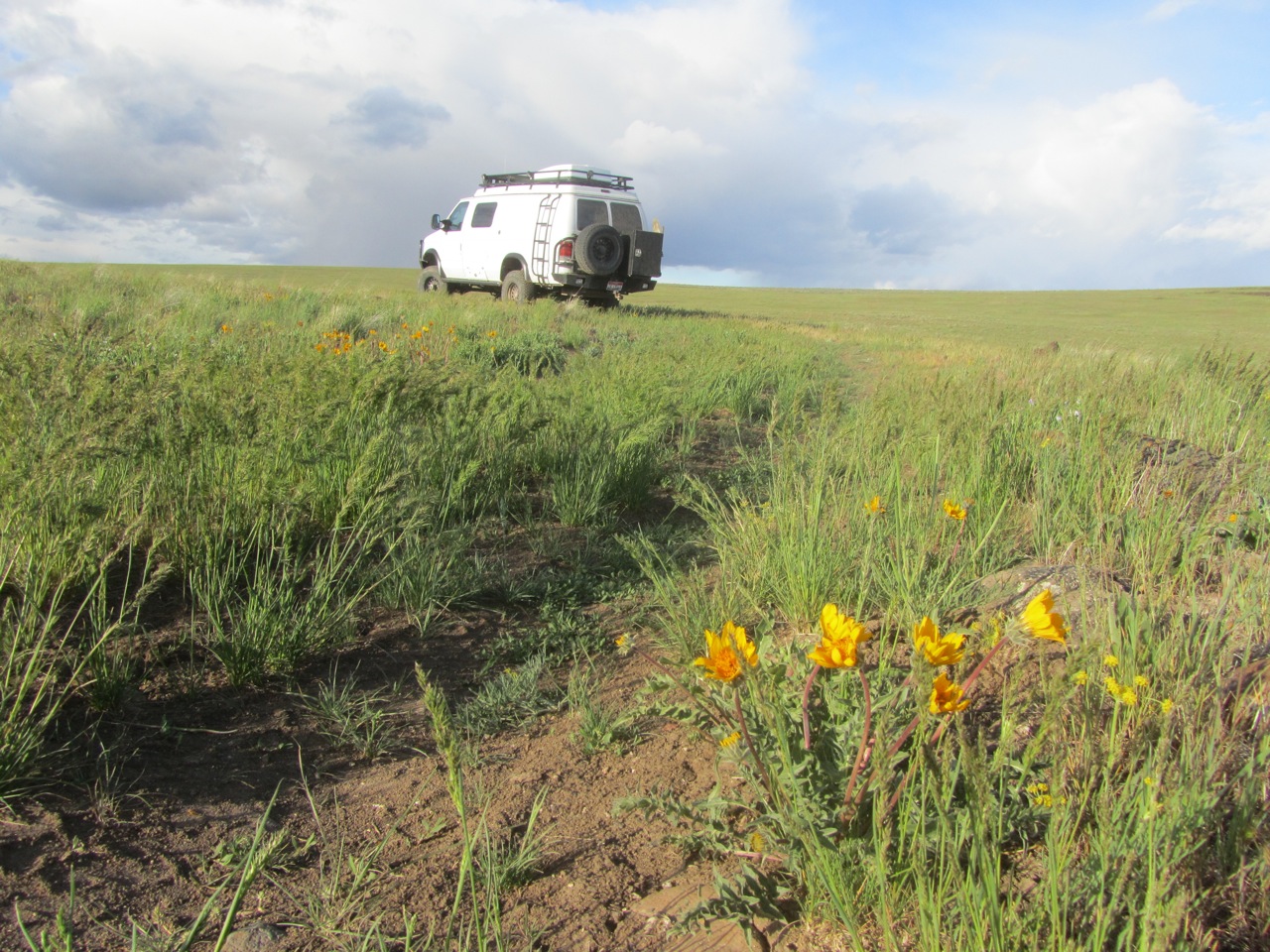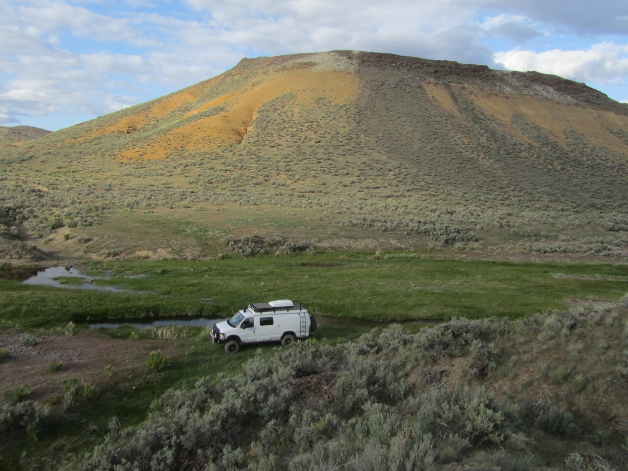 Darkness came after many more miles of rocky road. But the beauty of Moby is that “home is where you park it”. I found a flat spot and called it a night.
