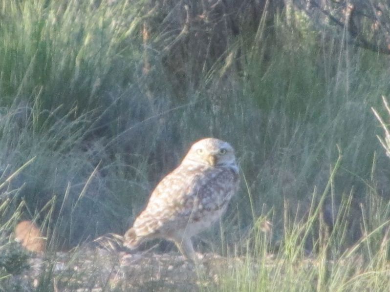 Right on the shoulder of the road was this apparent rodent/badger hole. But as I drove slowly past out burst a Burrowing Owl, nearly broadsiding Moby.