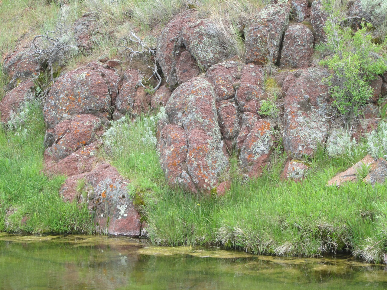 Sometimes the rocks are a mix of red and black volcanics with lichen accents.