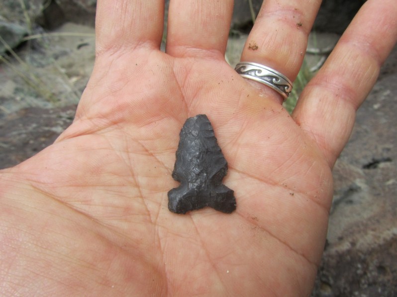 Near a petroglyph I found a nice arrowhead.  Rather than taking such artifacts it is now PC and the law to leave them behind. But what I like to do is share them with whatever people I am with, and then hide it in a distinct spot nearby. If anyone from the group returns they can pull it out to share with whomever they are with, and then return it to the land once more. Better than letting it sit in a box back home.