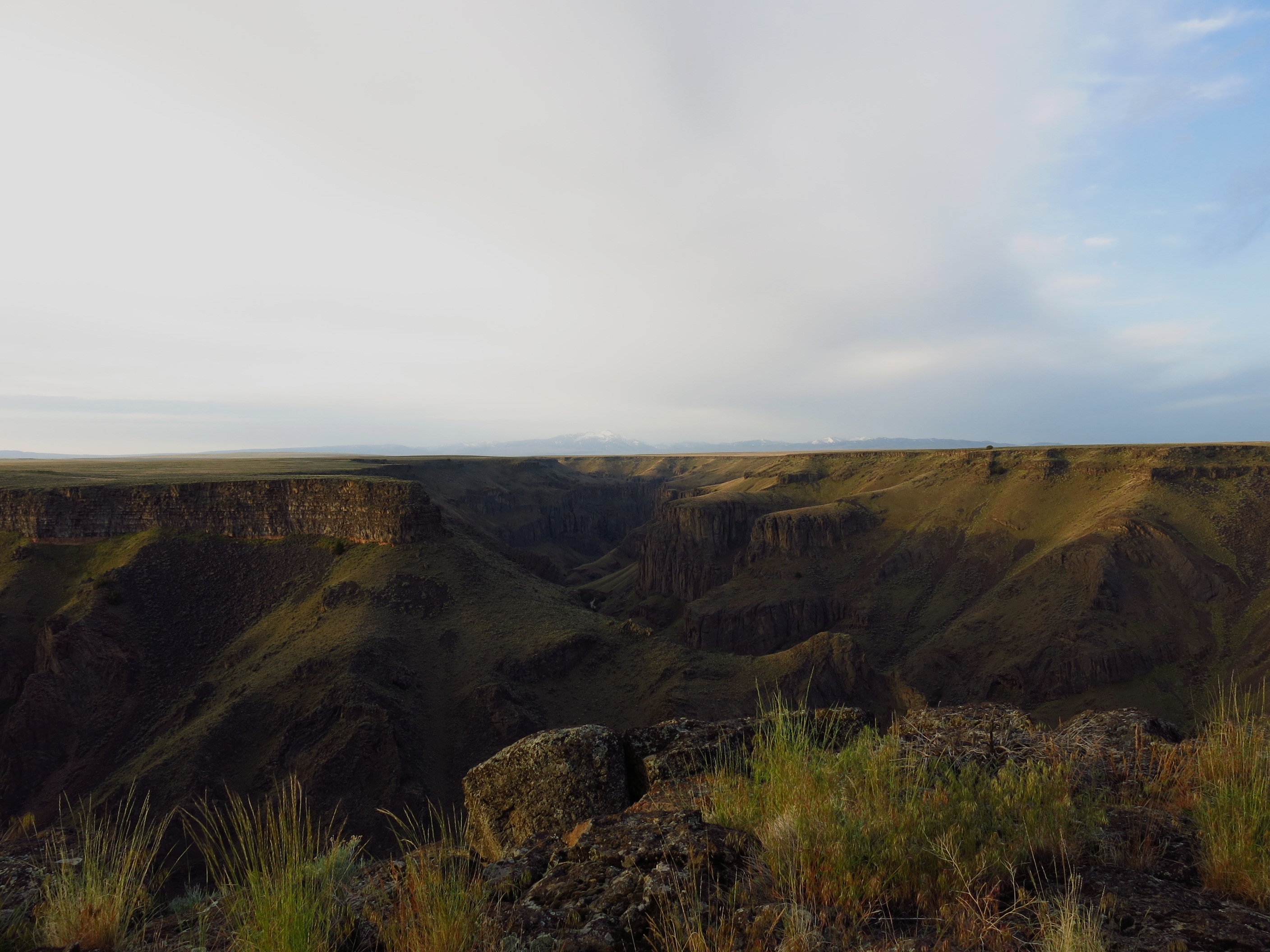 Poison Creek is a small (~20 miles long) tributary of the Jarbidge River. Both streams run through deep canyons that slice through flat range land. It’s flat-flat all around and then suddenly a series of cliffs drop down maybe 500 feet to the water far below. The confluence of Poison Creek and the Jarbidge River creates a canyon confluence where we camped. Beyond the canyons, looking south into Nevada, is the Jarbidge Range.