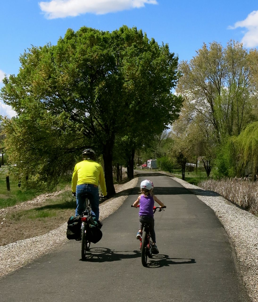 We thought the Weiser River Trail would be a great trip with our granddaughter, so we loaded up the mountain bikes and headed out. The old Pacific and Idaho Northern railroad grade runs from Weiser to Rubicon (Idaho). We’d do the first few miles with Lola, check it out, and return another time and ride the entire 84 miles. Read more about the Weiser River Trail here.