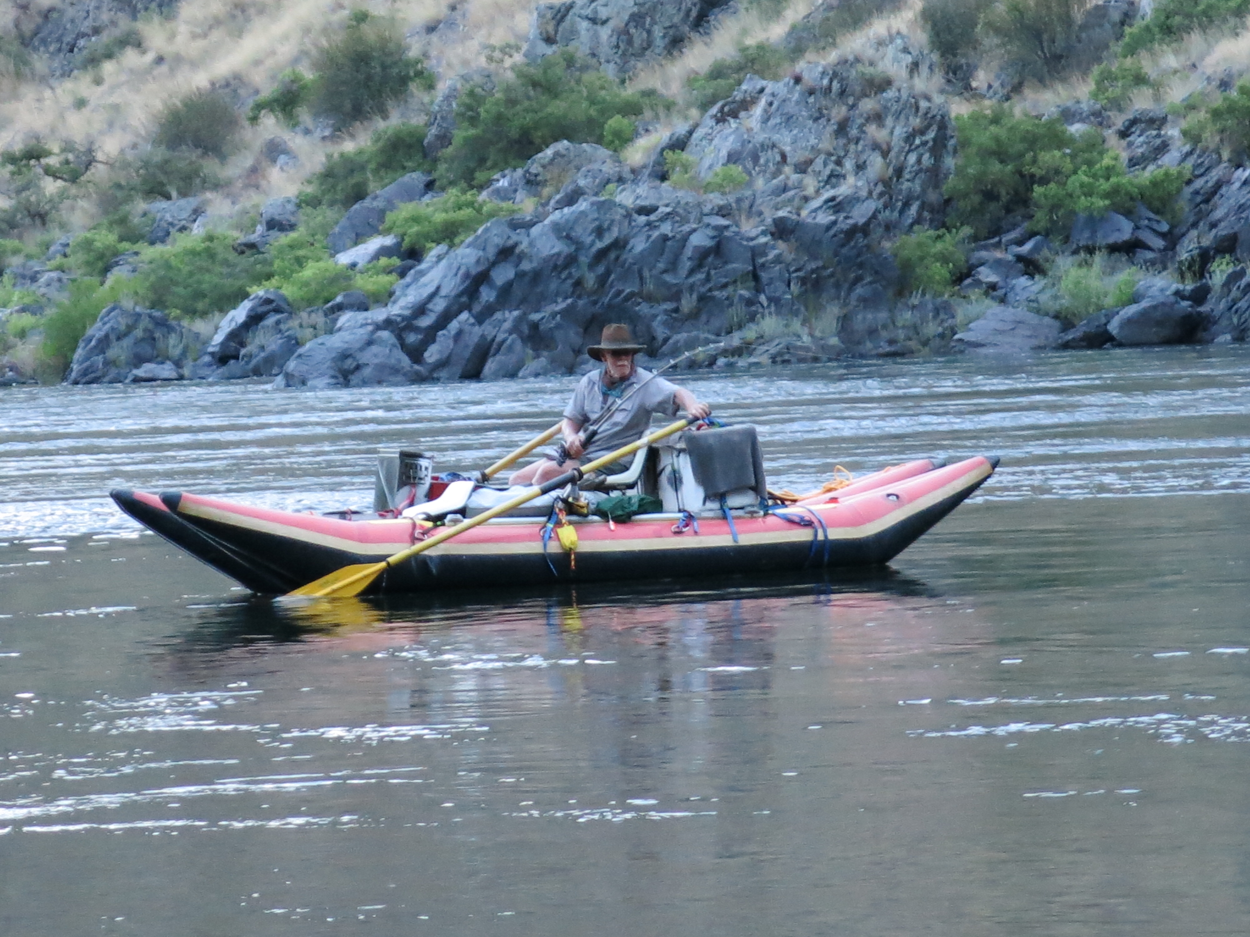 The Snake River leaves Hells Canyon dam and flows through Hells Canyon, running 79 miles north to Heller Bar. Hells Canyon is the nation’s deepest canyon: 8,000 feet from rim to river at its deepest point with an average depth of 5,500 feet. By comparison, the Grand Canyon is 6,000 feet at its deepest. We spent a week on the river, ran class III/IV rapids, drifted through quiet stretches, and enjoyed the company of friends.